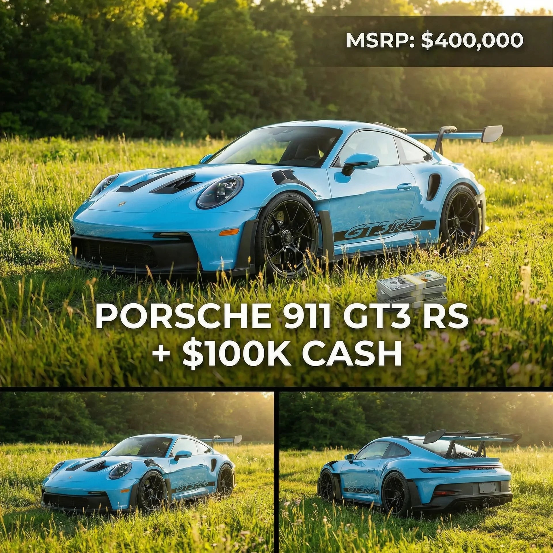 We call you, deliver the GT3 RS + $100K (or $400K cash), and cover taxes/insurance for 3 years!