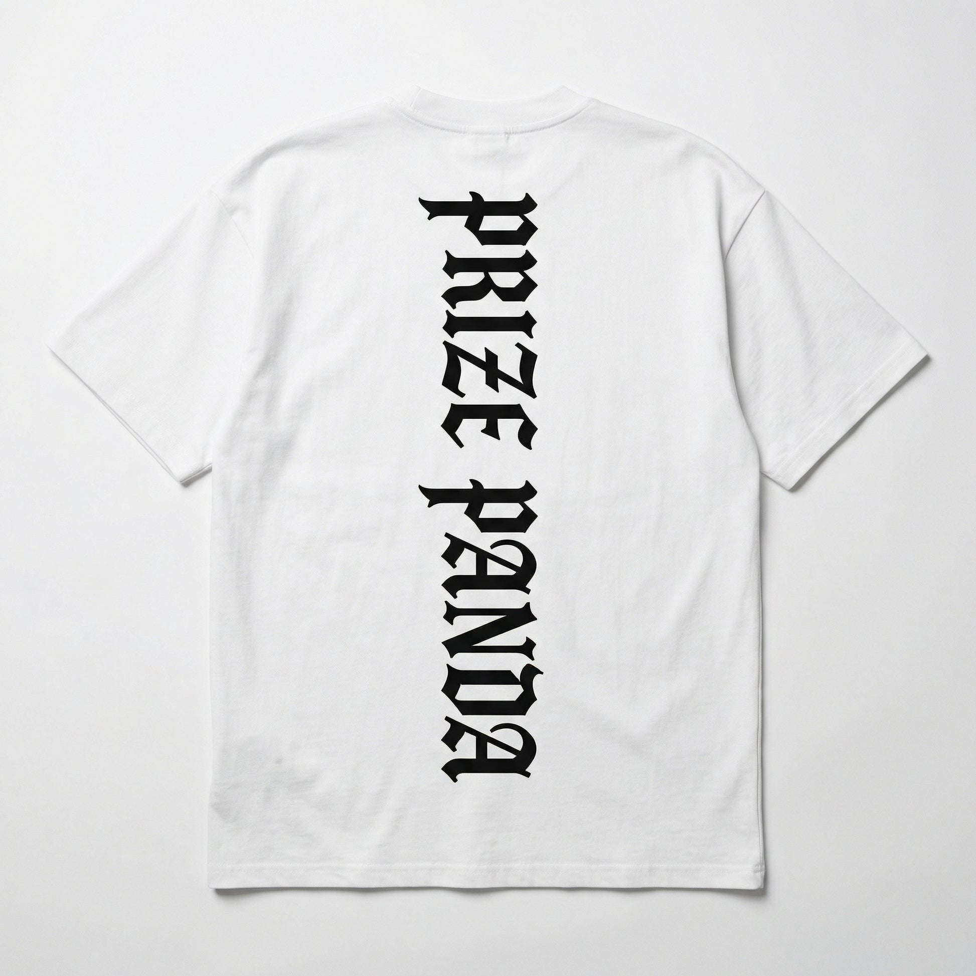Stand out with bold vertical gothic lettering down the back. Features "PRIZE PANDA" in striking old English typography. Made from heavyweight premium cotton with a relaxed oversized fit. A streetwear essential.