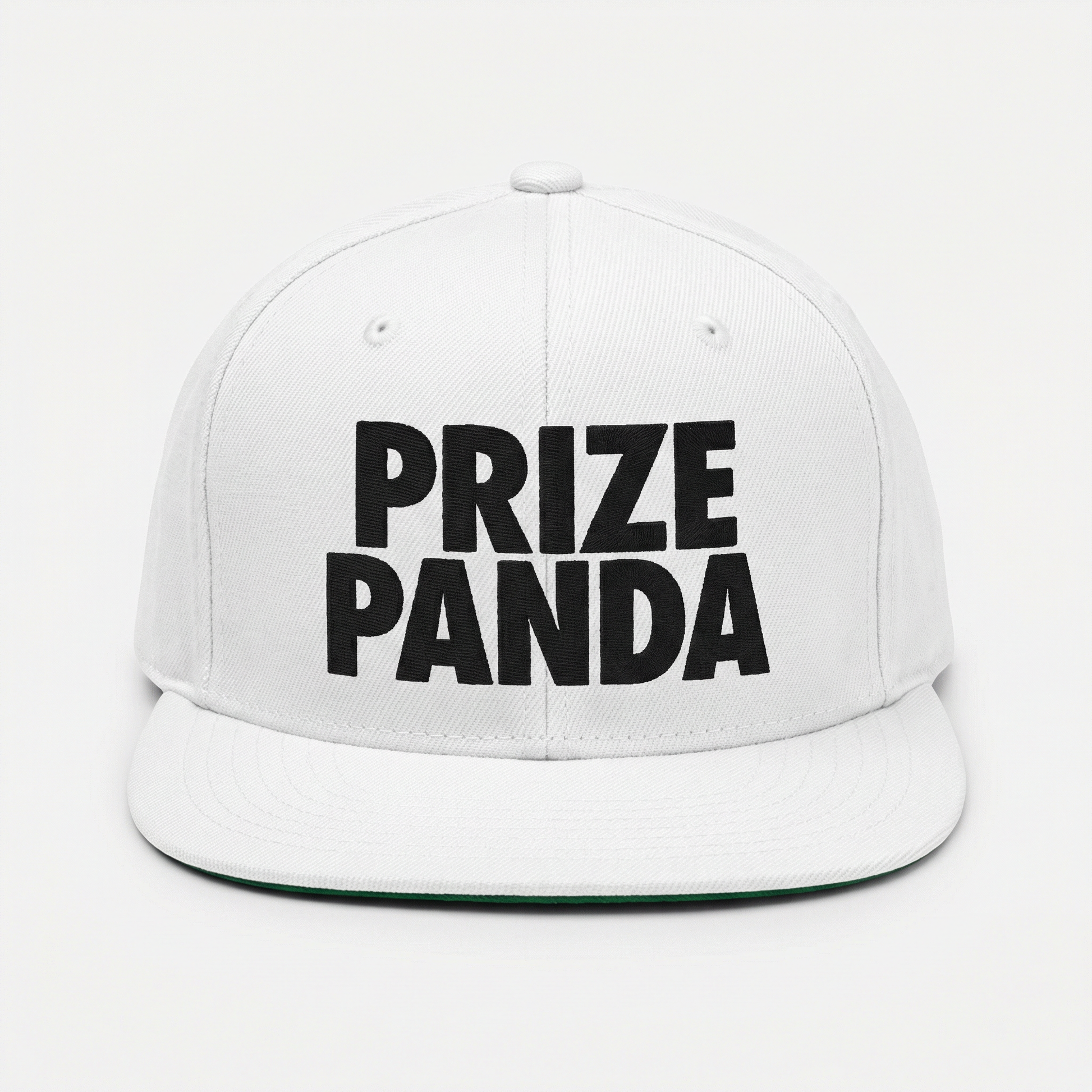 A bold streetwear staple featuring large "PRIZE PANDA" embroidery across the front. Structured high-crown design with a flat brim and green undervisor. Adjustable plastic snapback closure for the perfect fit. One size fits most.